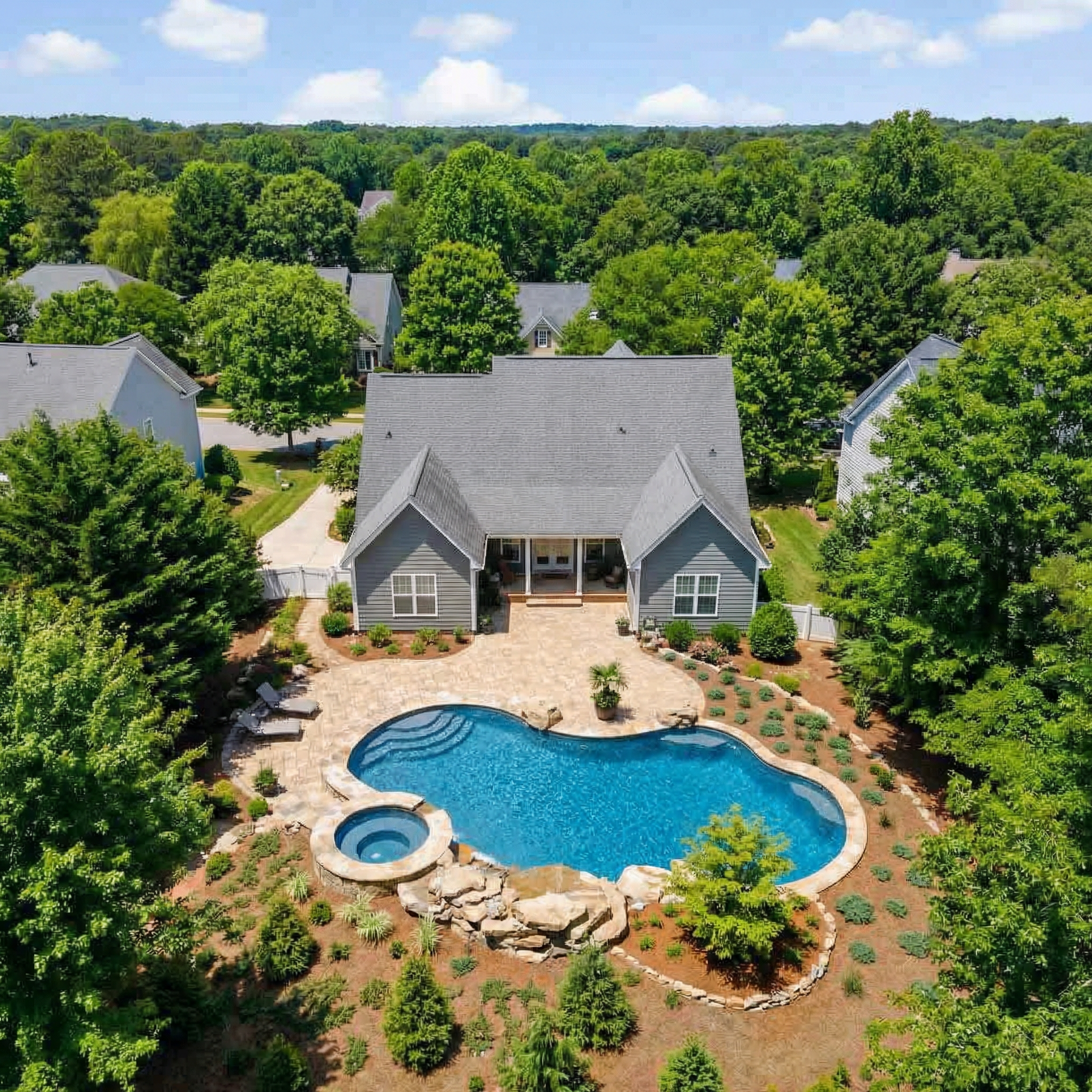 Our AI places a photorealistic pool into their backyard — Modern, Classic, or your own custom design. It looks real.
